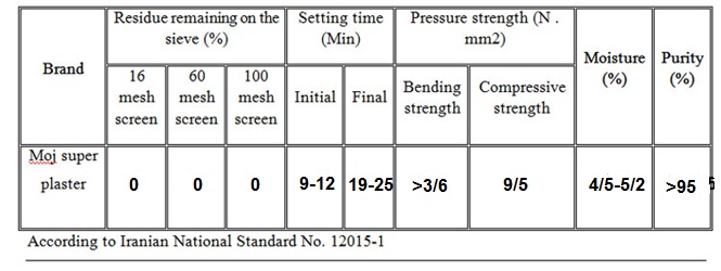 Weigh 2.5 kilograms of Momen Abad Semnan gypsum and 2 liters of water. Gradually add the gypsum to the water over a period of 2 minutes, then stir for 30 seconds. This mixture is used for finishing building surfaces and for moldings.